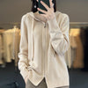 Dames Hoodie met Rits – Relaxte Pasvorm – Zachte Knit – Capuchon met Koord – Kabeldetail