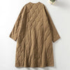 Dames Jas – Gewatteerd – Oversized Pasvorm – Lang Model – Kraagloos V-hals – Opgestikte Zakken