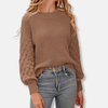 Dames trui – Relaxed fit – Gebreid – Textuurmouwen – Ballonmouwen – Geribde boorden