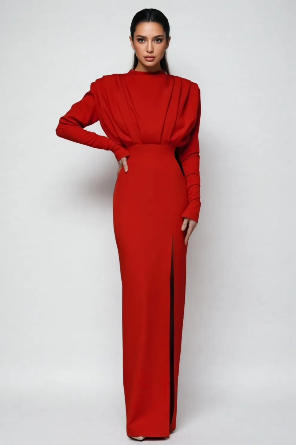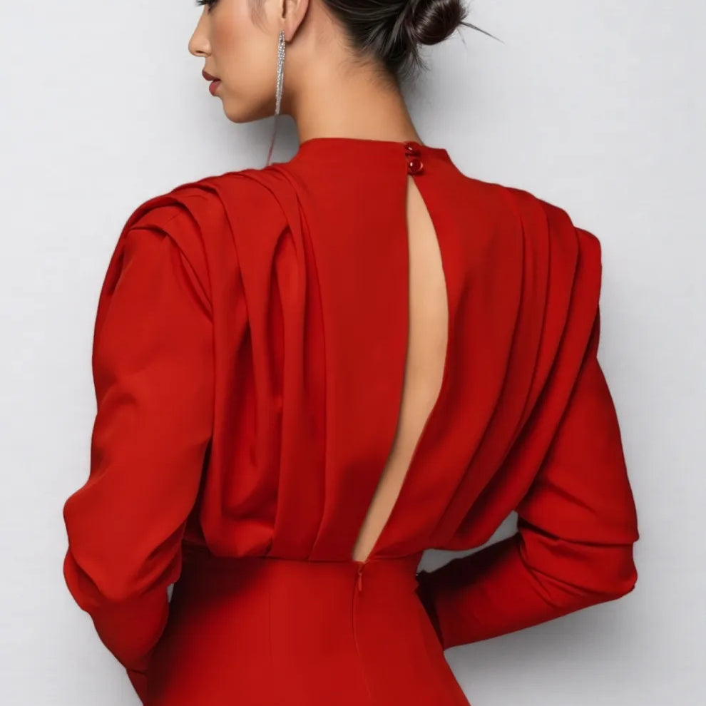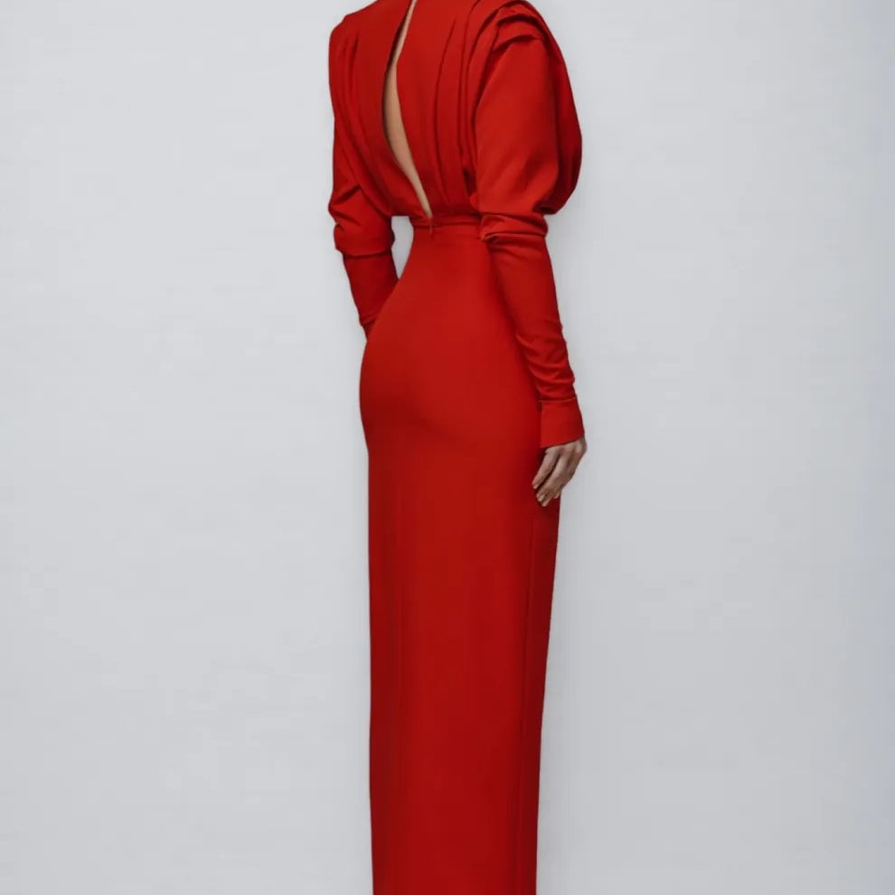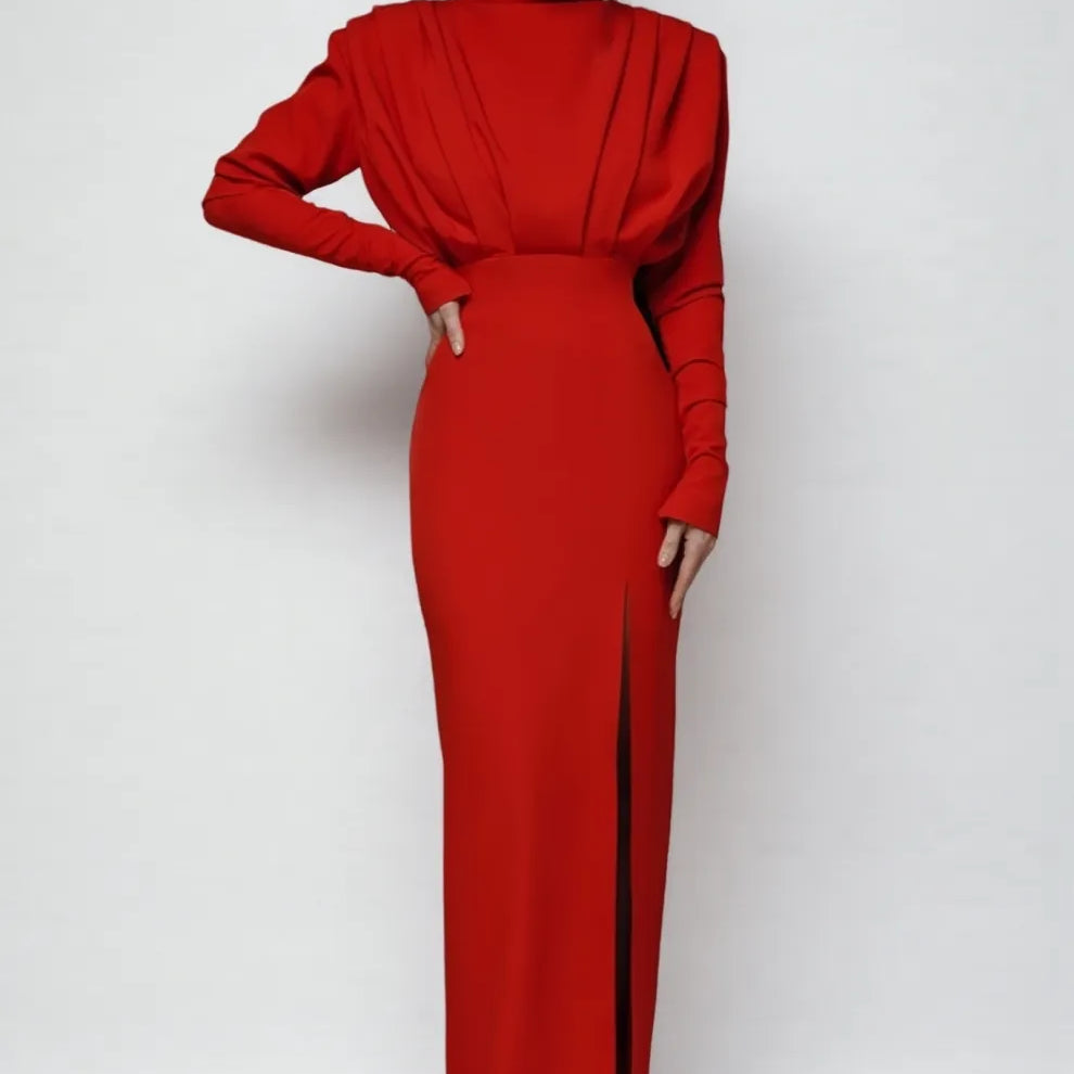 Davina High Neck Slit Maxi Dress-Red