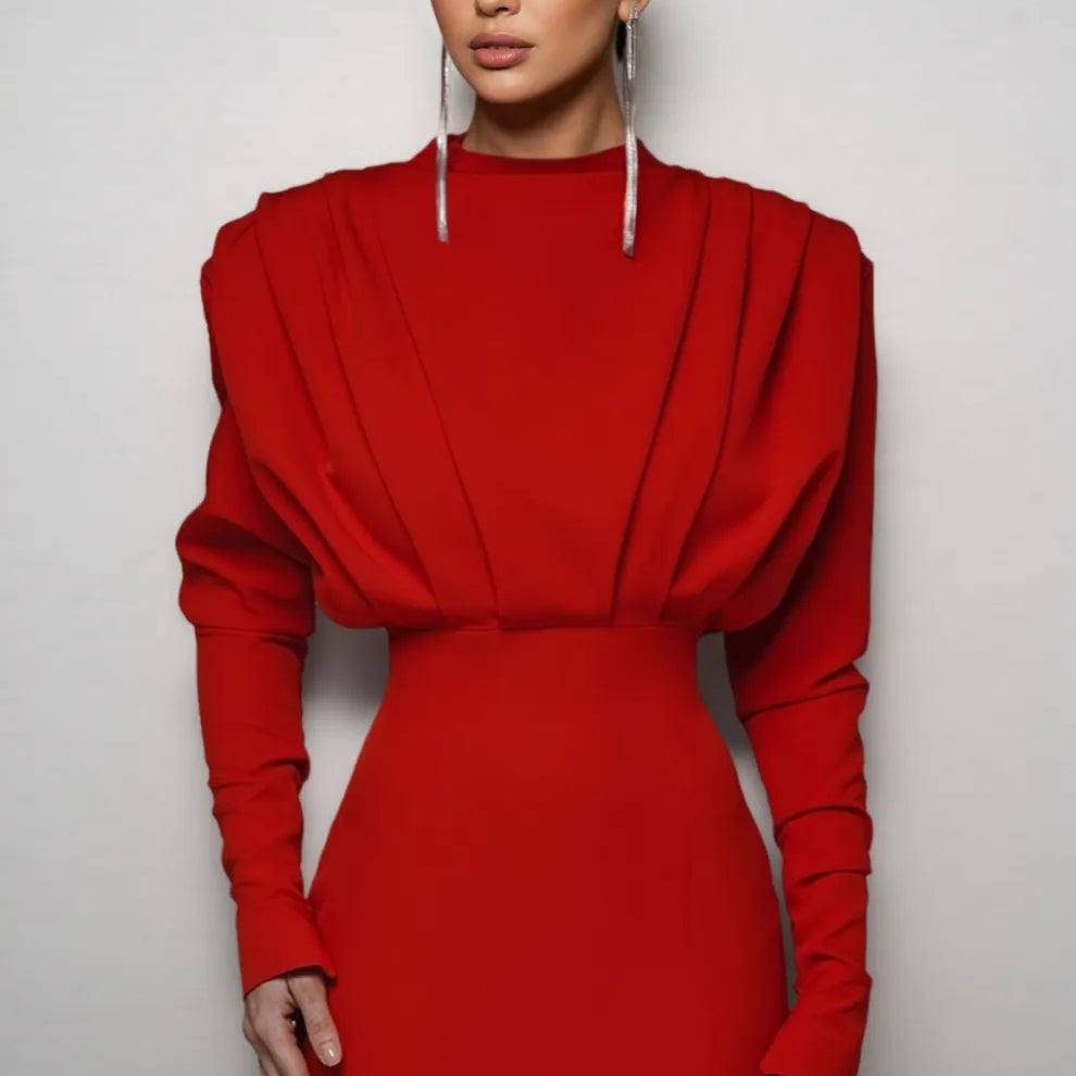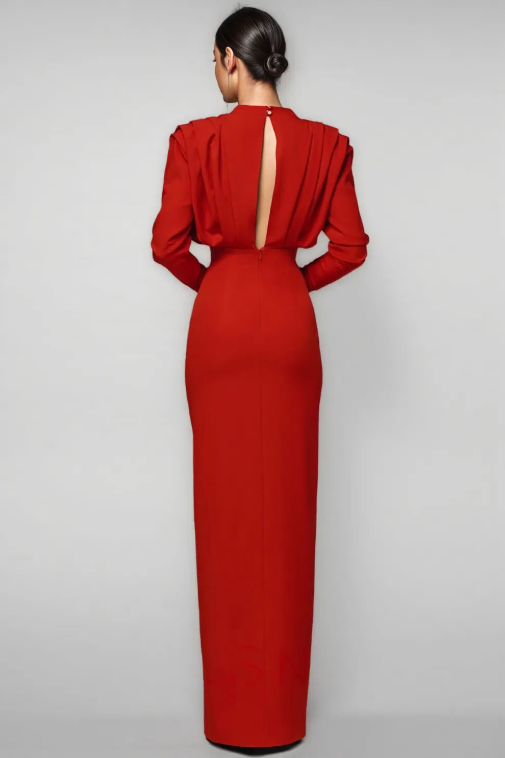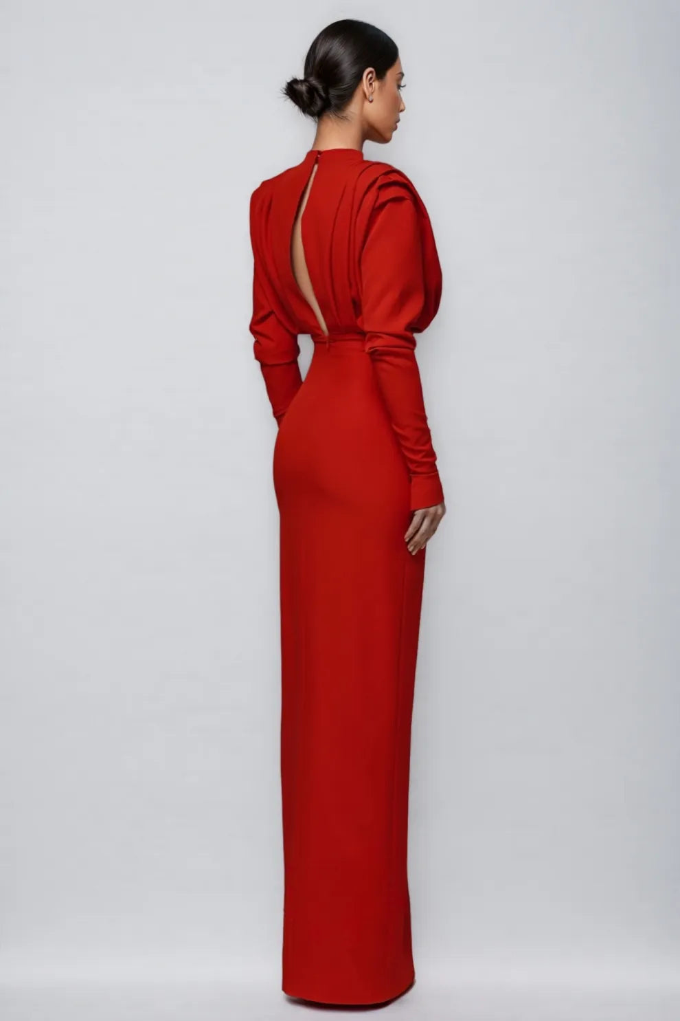 Davina High Neck Slit Maxi Dress-Red
