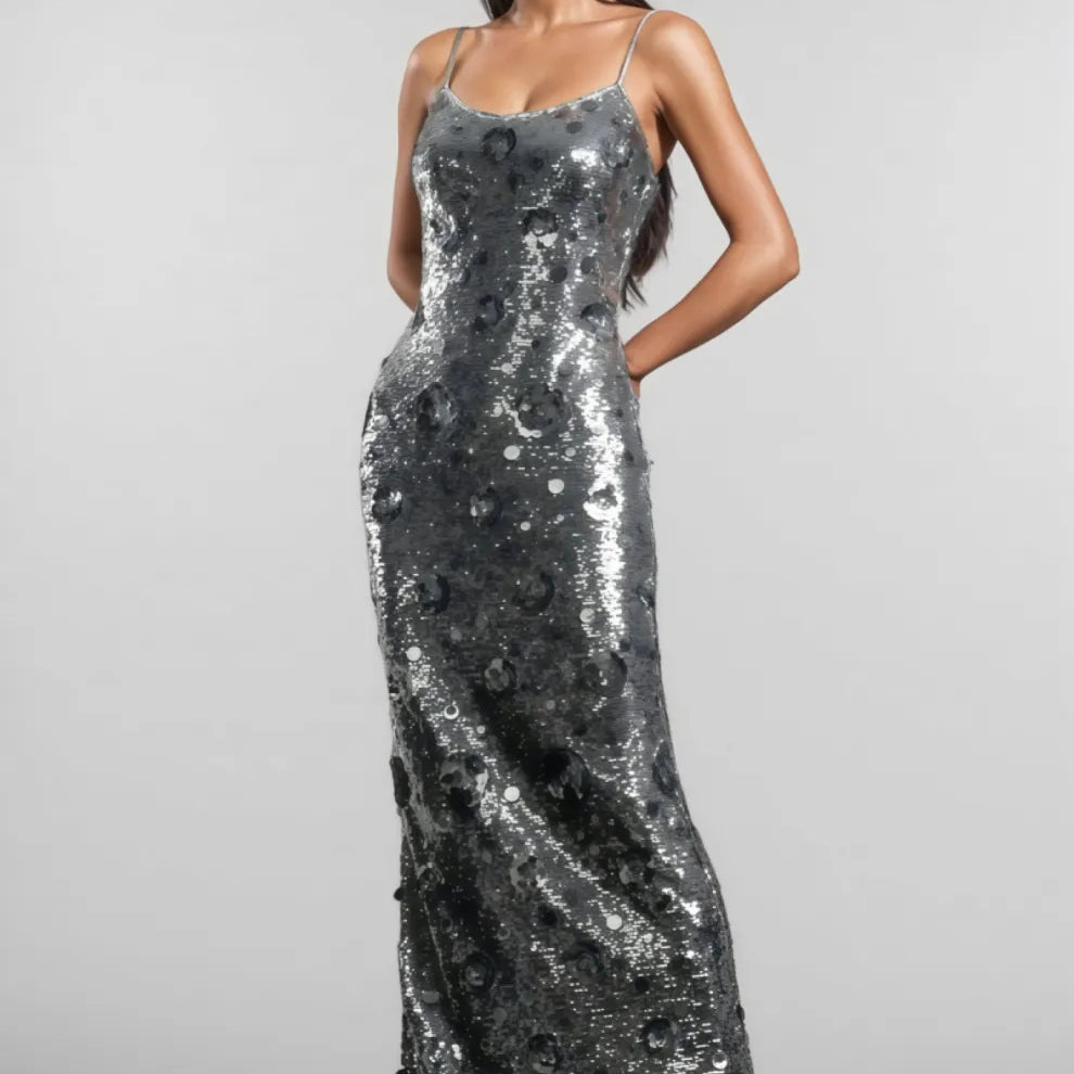 Dilara Strappy Floral Sequinned Maxi Dress