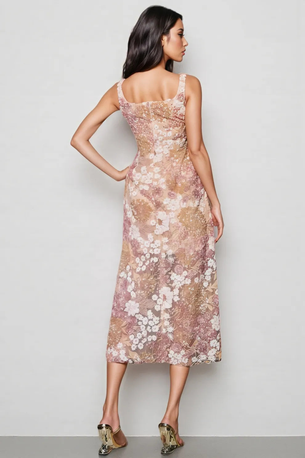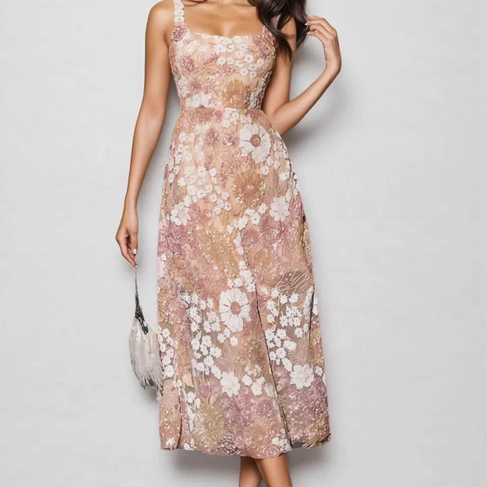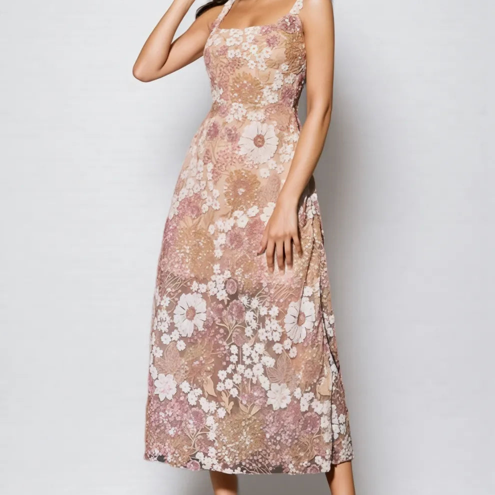 Gaeldriel Spaghetti Sequin Embroidered Midi Dress