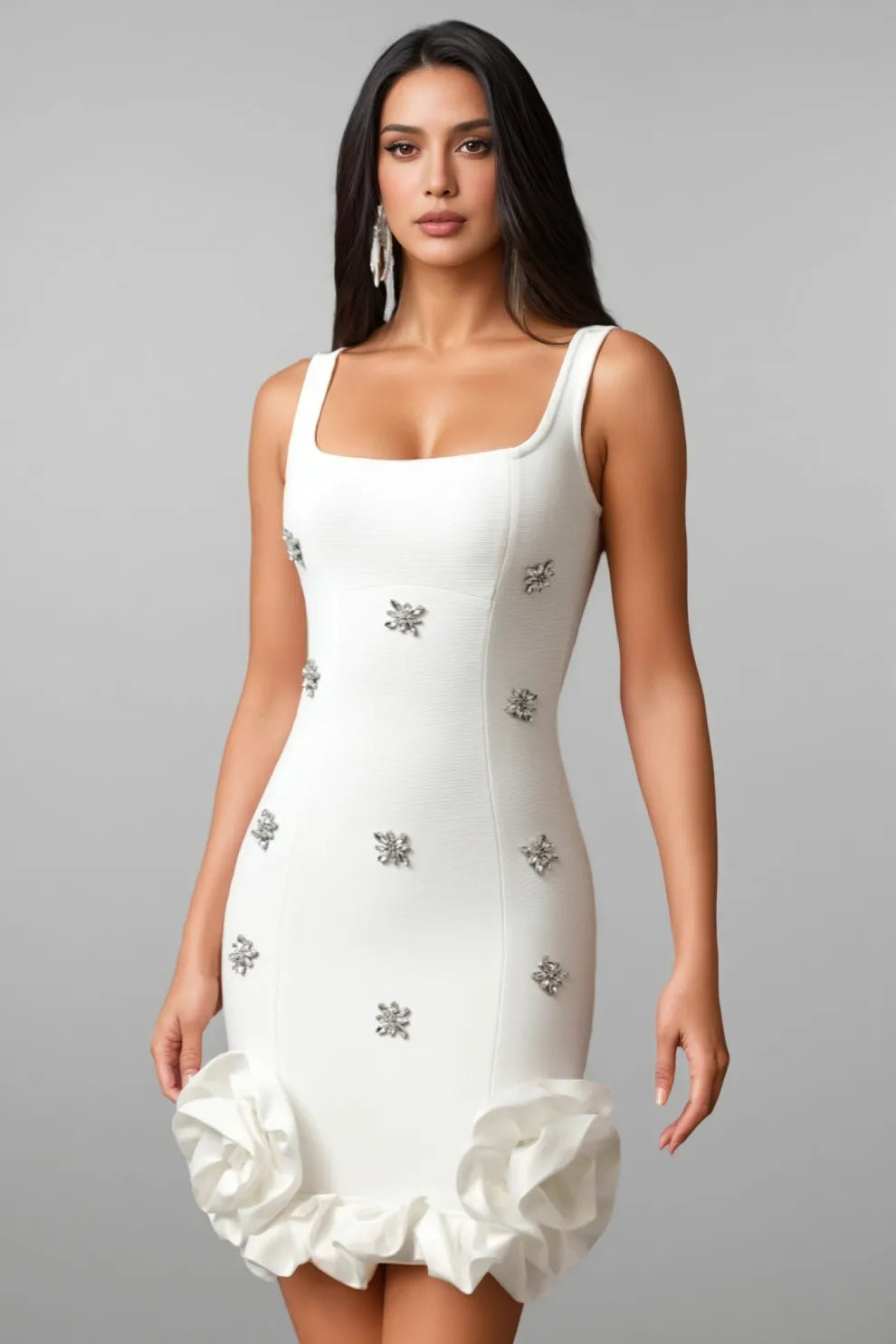 Gearoid Sleeveless Diamond Flowers Mini Dress