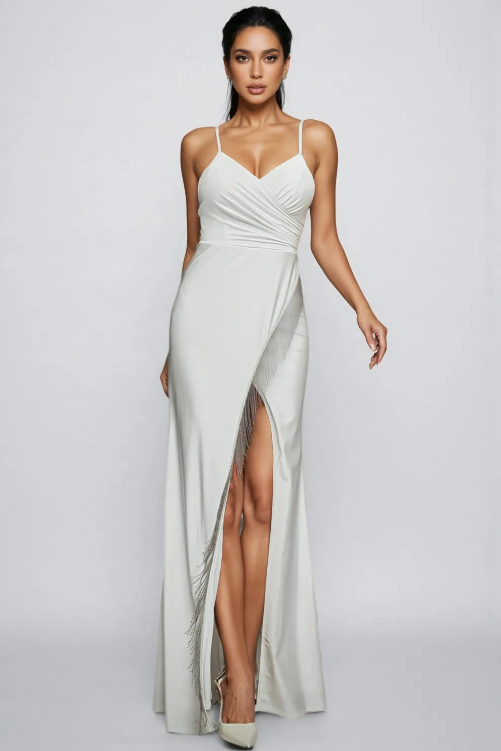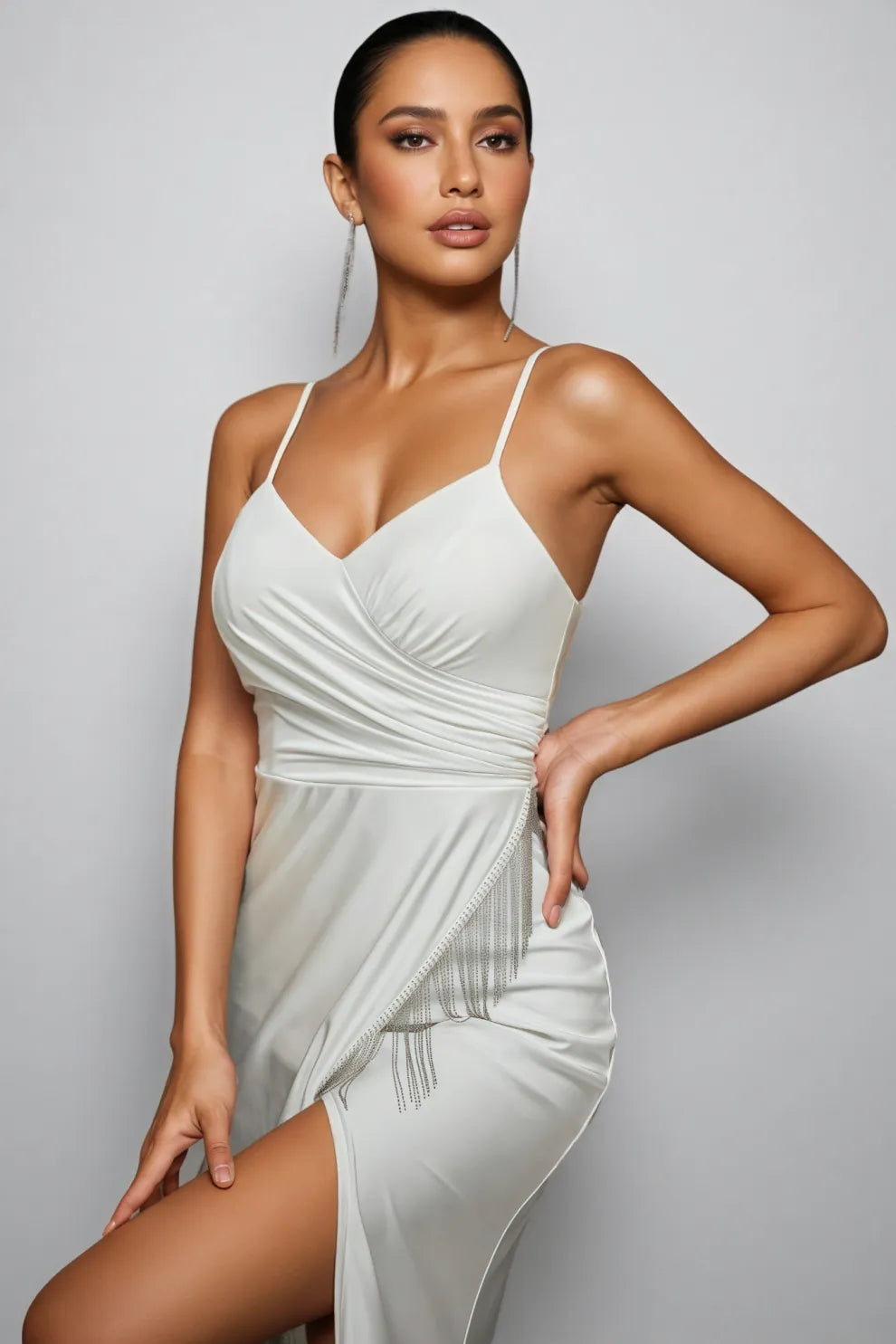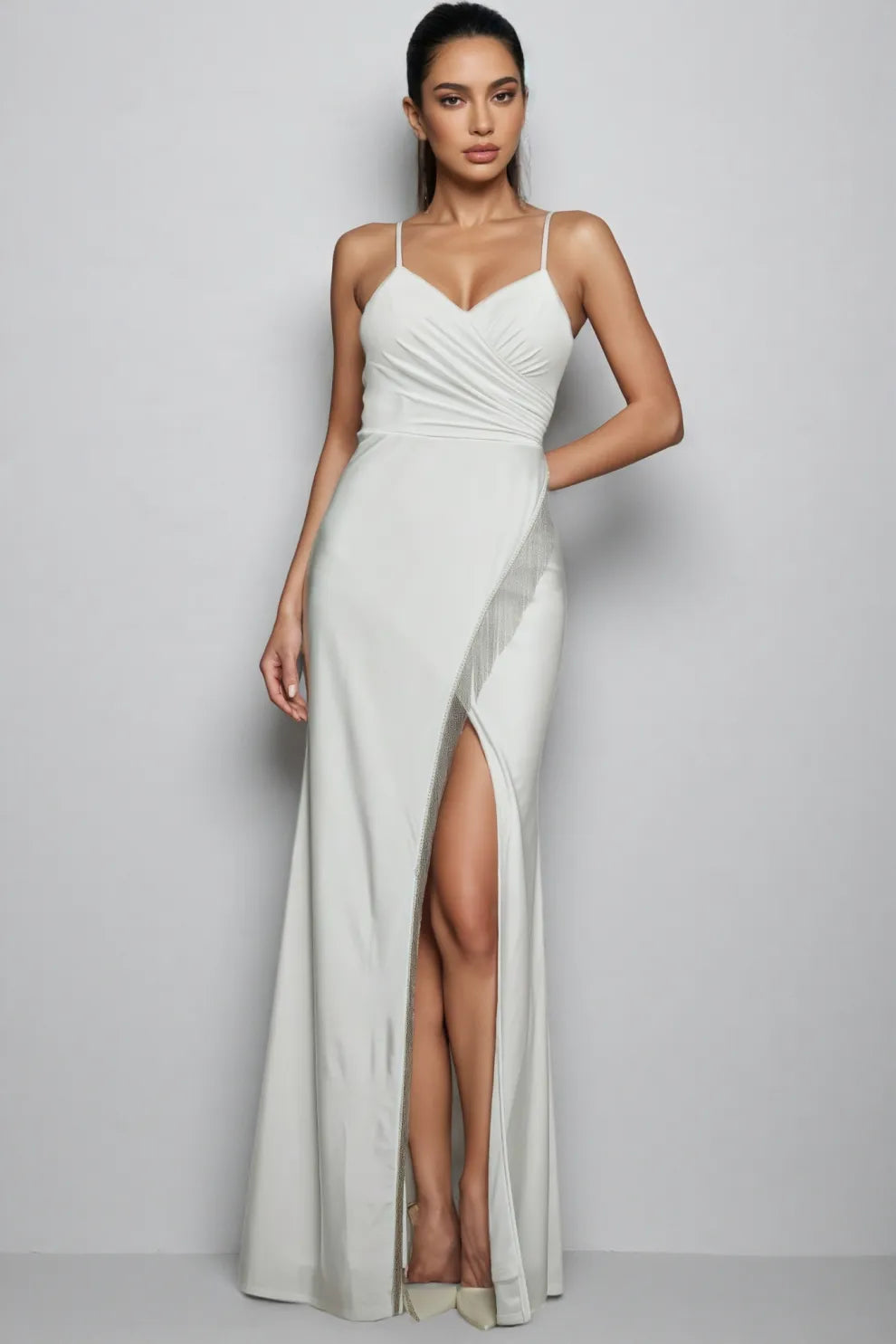 Gio White Halter-Neck Split Maxi Dress