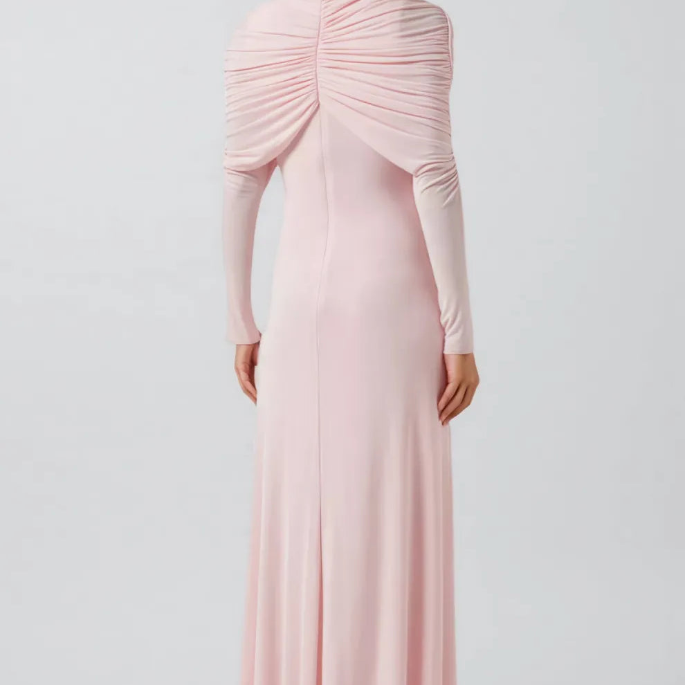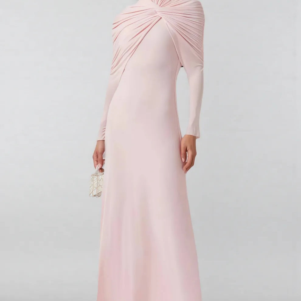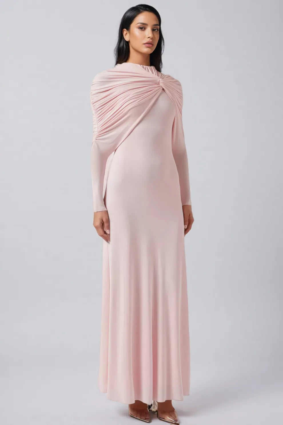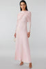 Greelk Pink Long Sleeve Pleated Maxi Dress