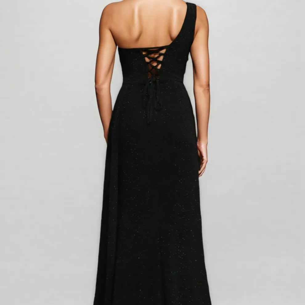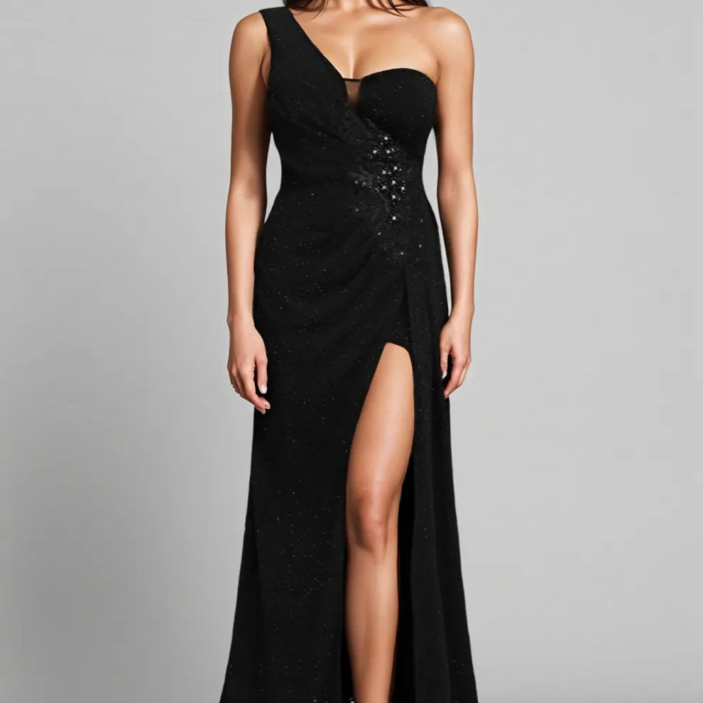 Hryonth One Shoulder Diamond Slit Maxi Dress