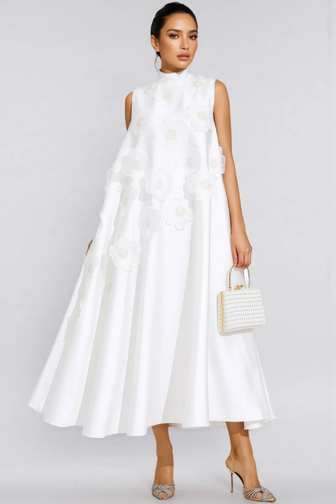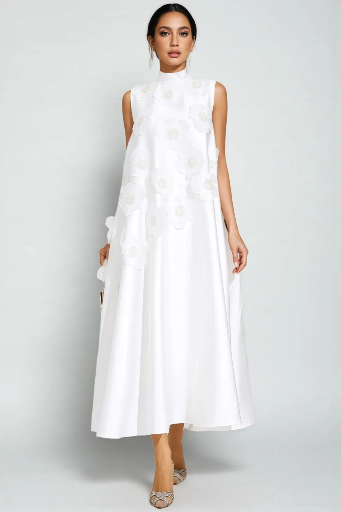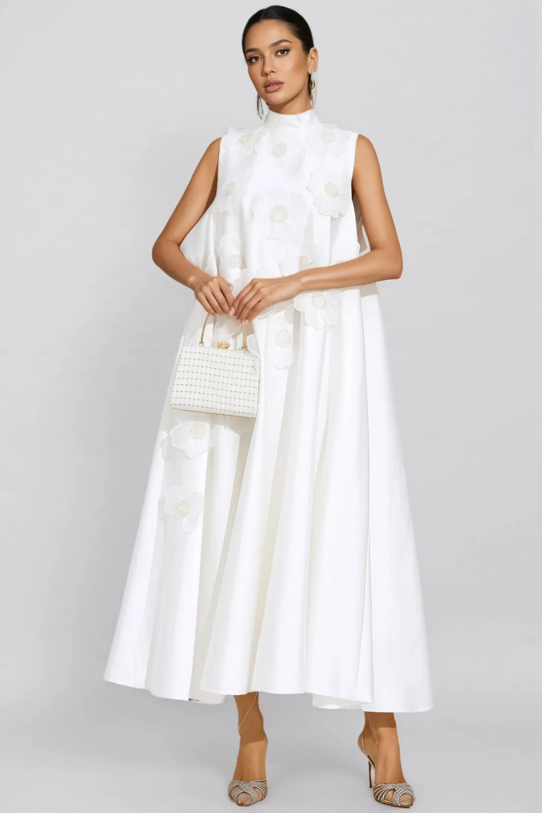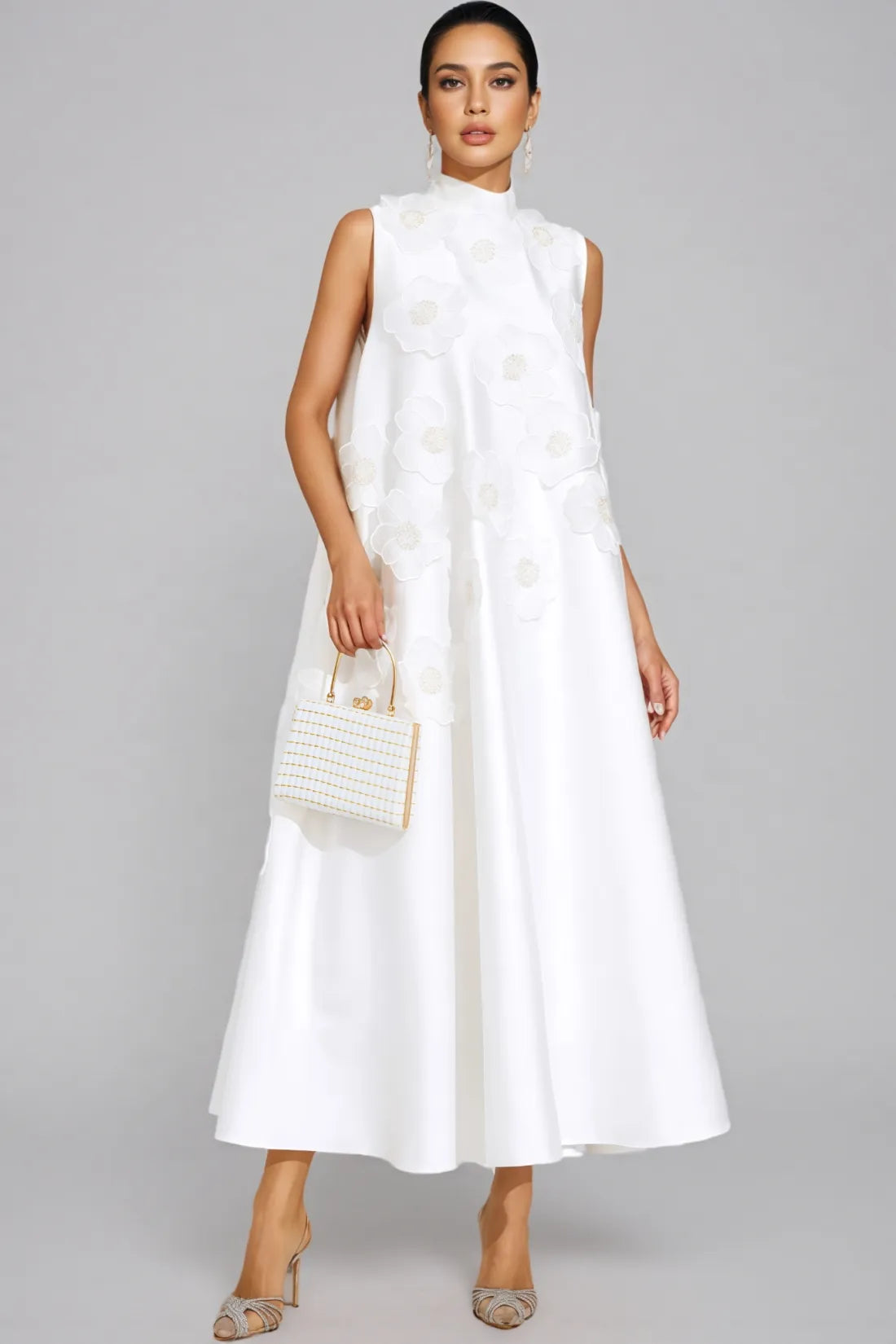 Jaxsty White Flowers Sleeveless Maxi Dress