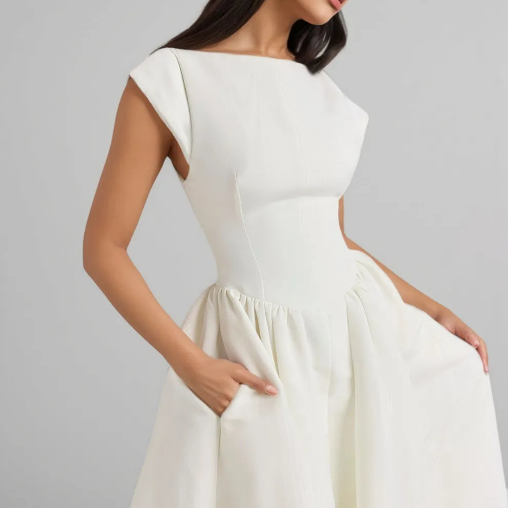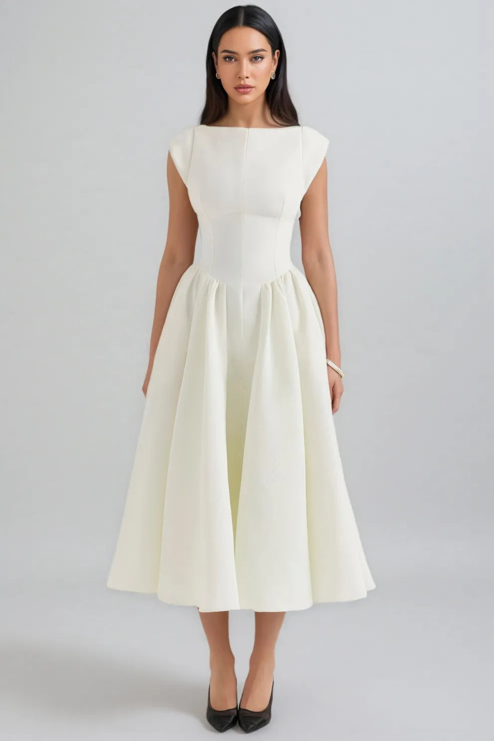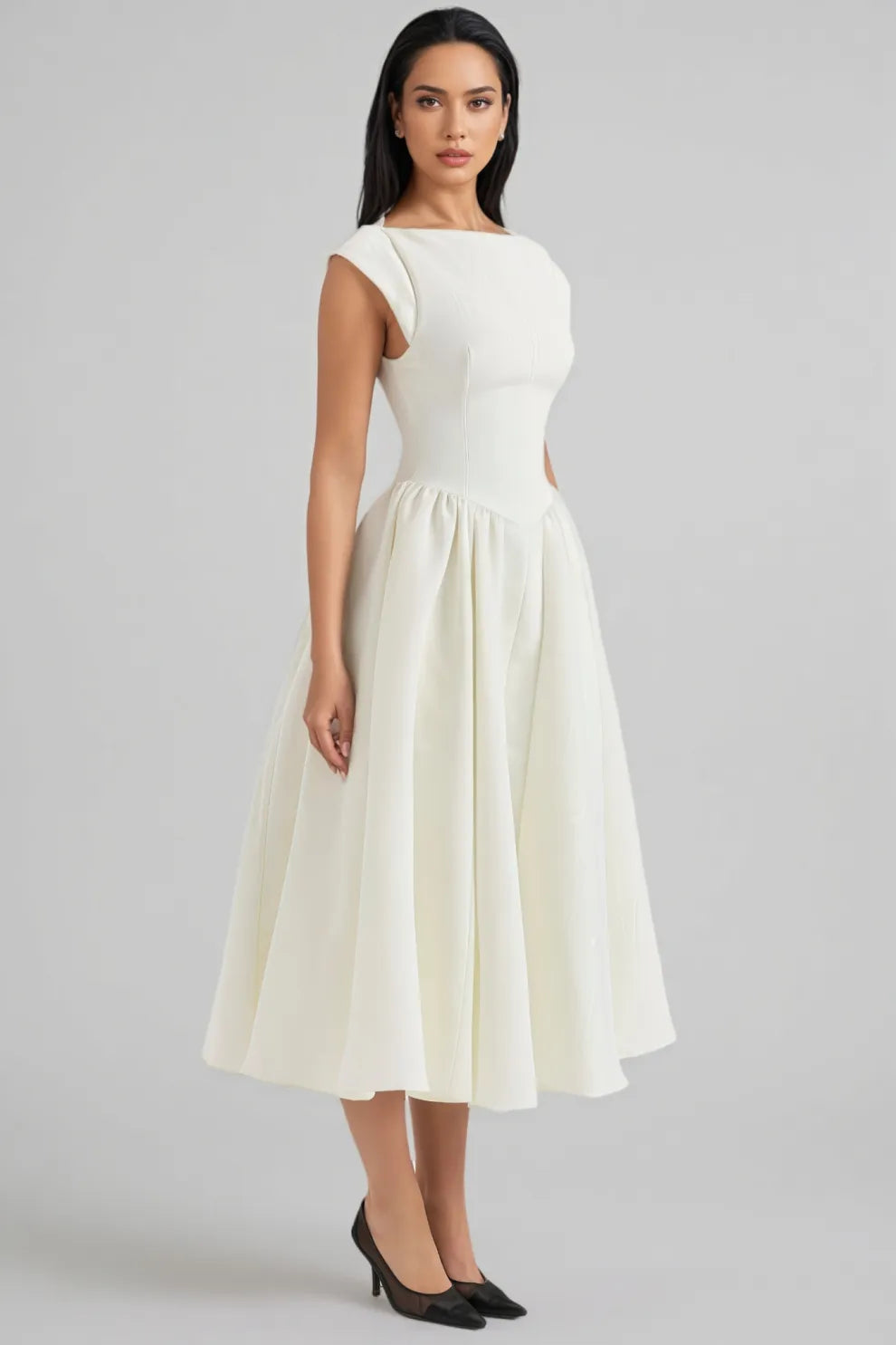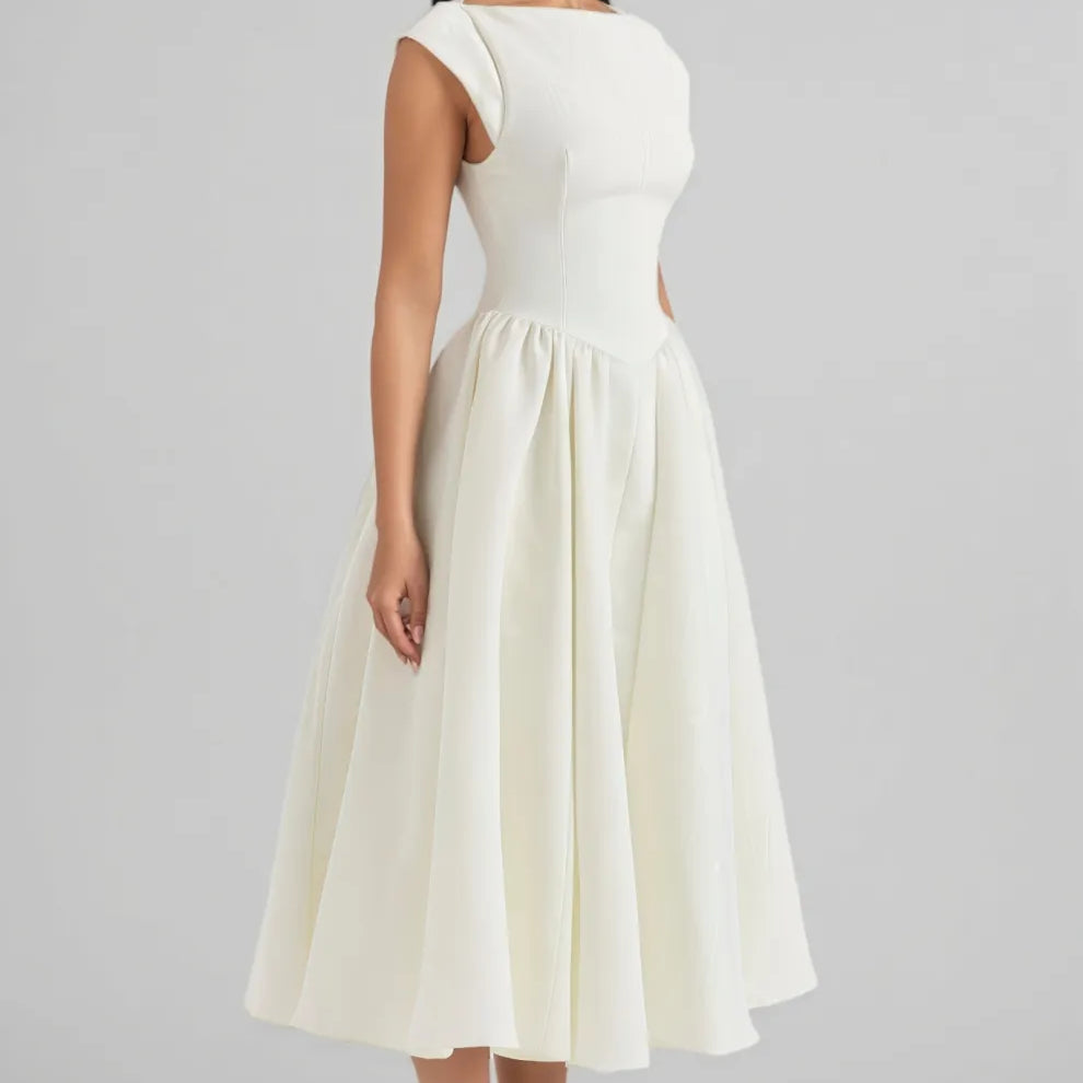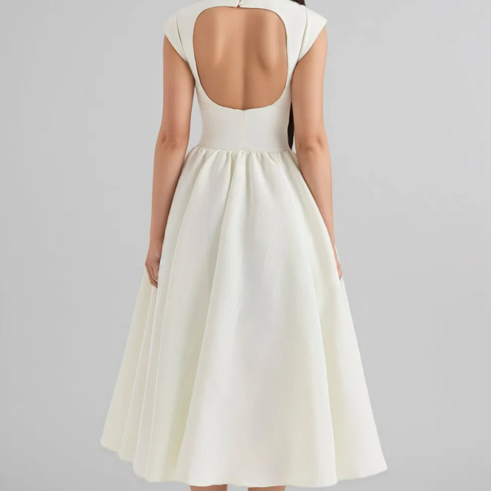 Jovie Ivory Moire Satin Midi Dress