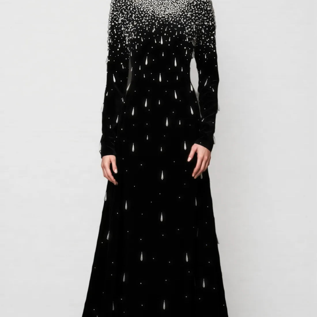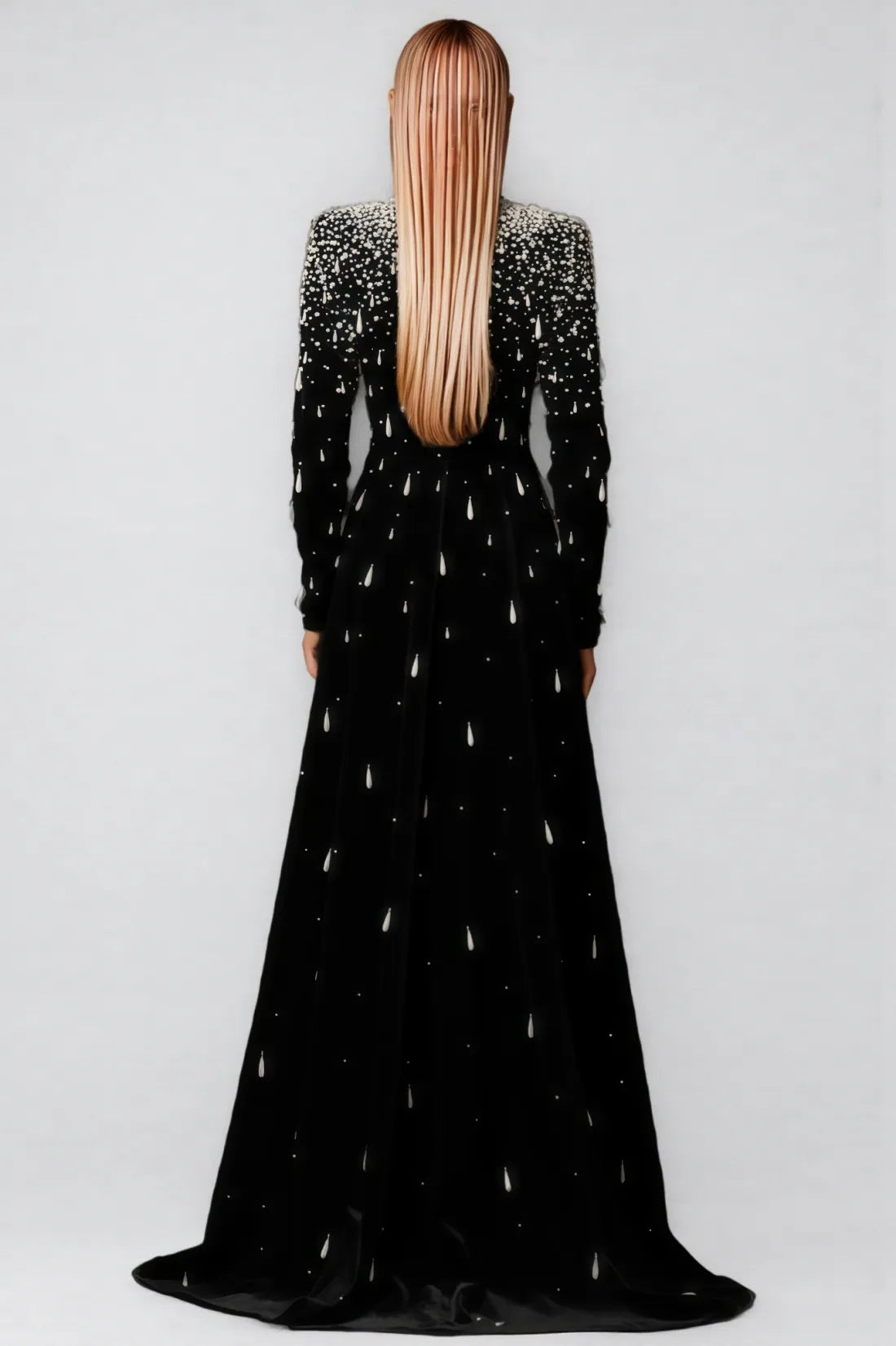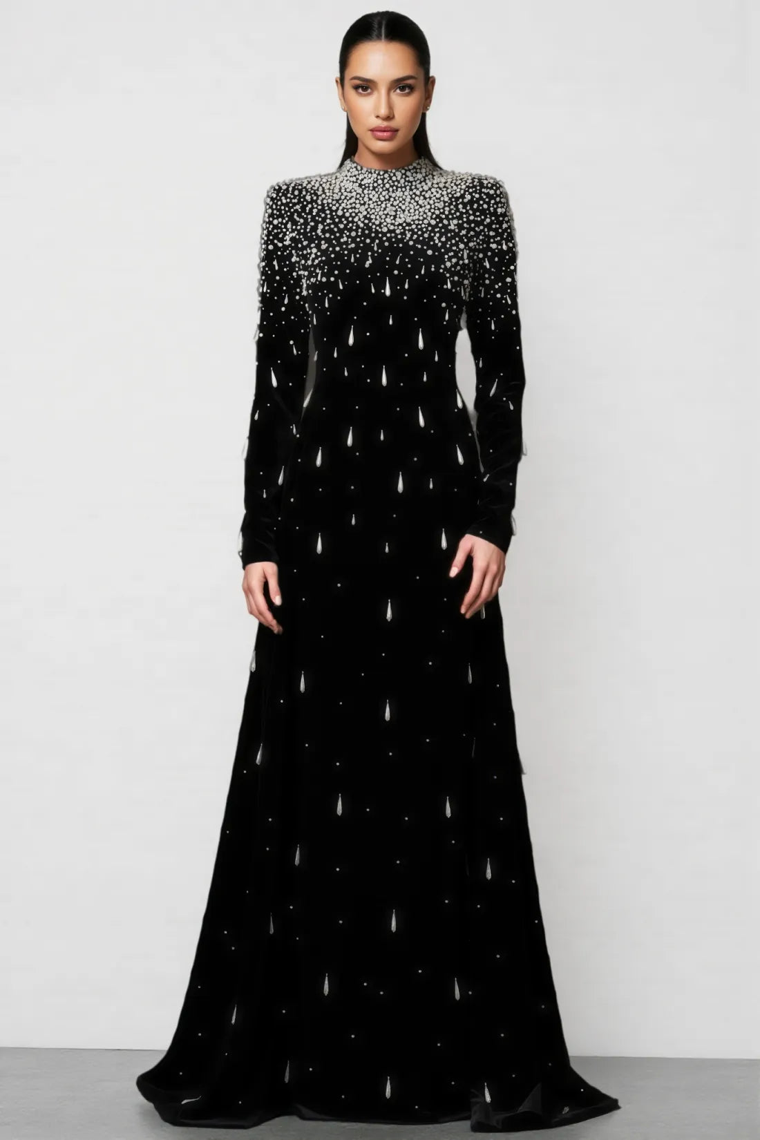 Junrty Black Pearl Beaded Maxi Dress