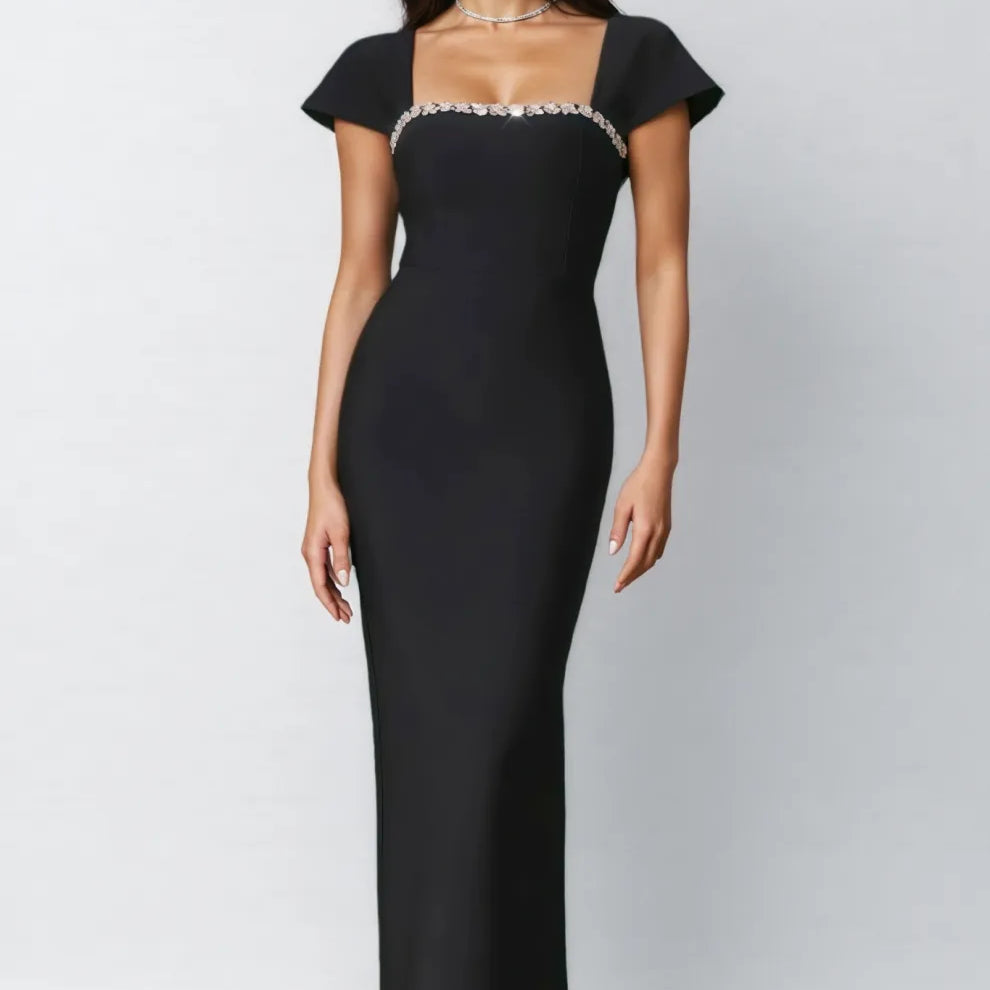 Lieve Short Sleeve Diamond Bandage Maxi Dress