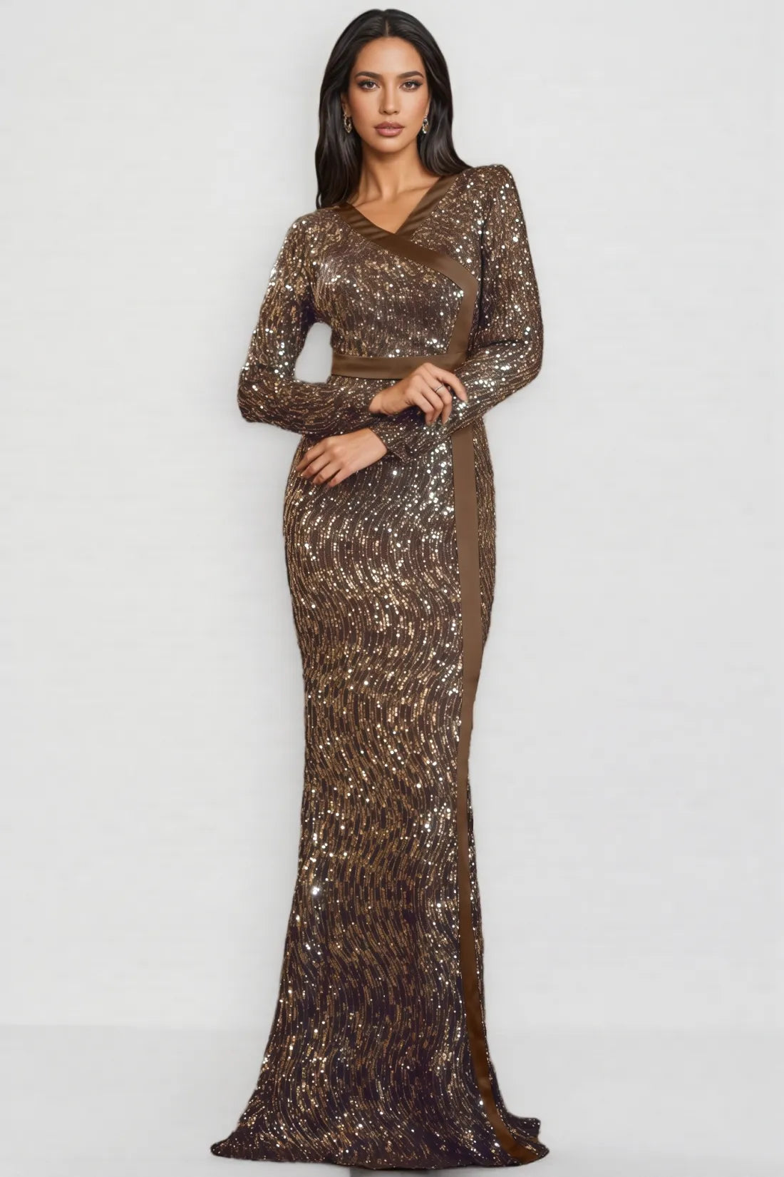 Lirrke V-Neck Bodycon Sequined Maxi Dress