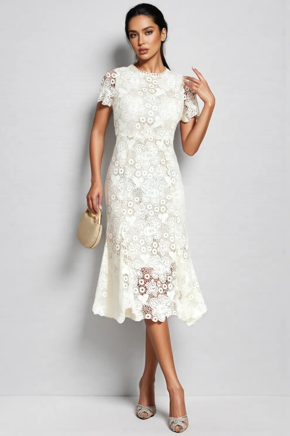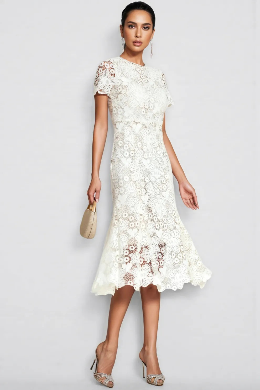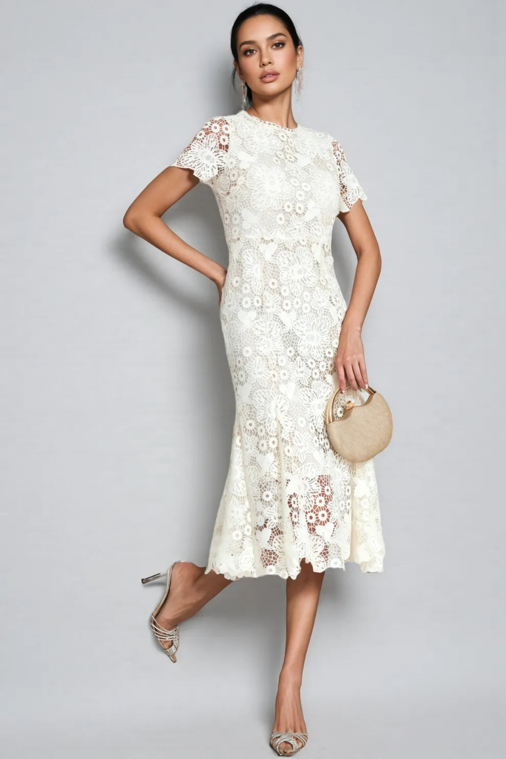 Nolaty beige Lace Mermaid Maxi Dress