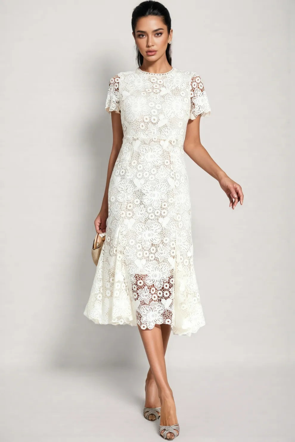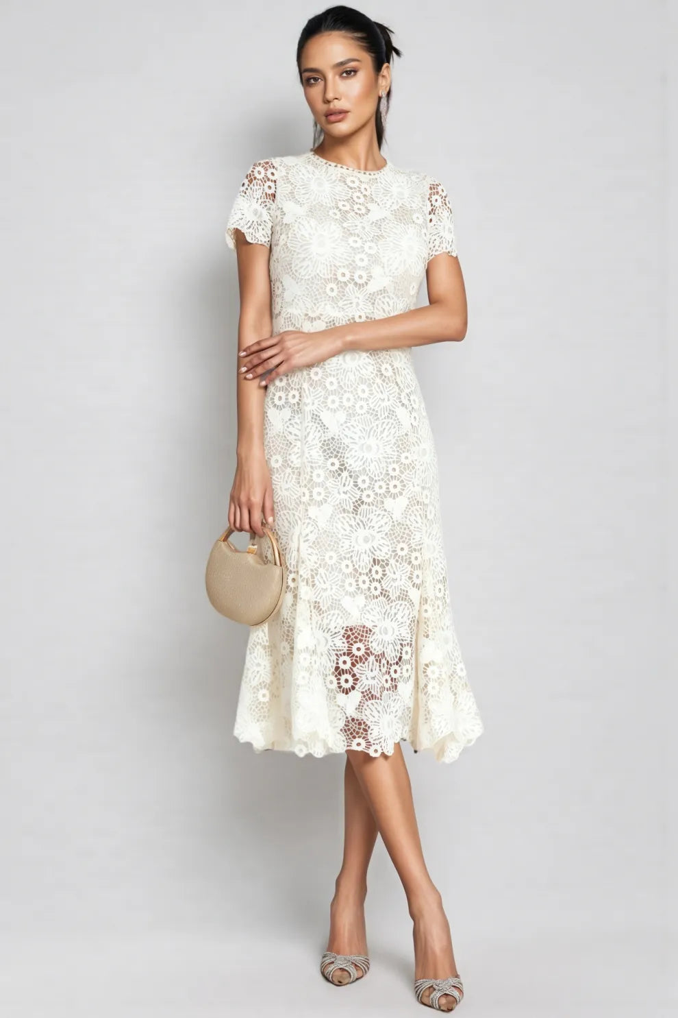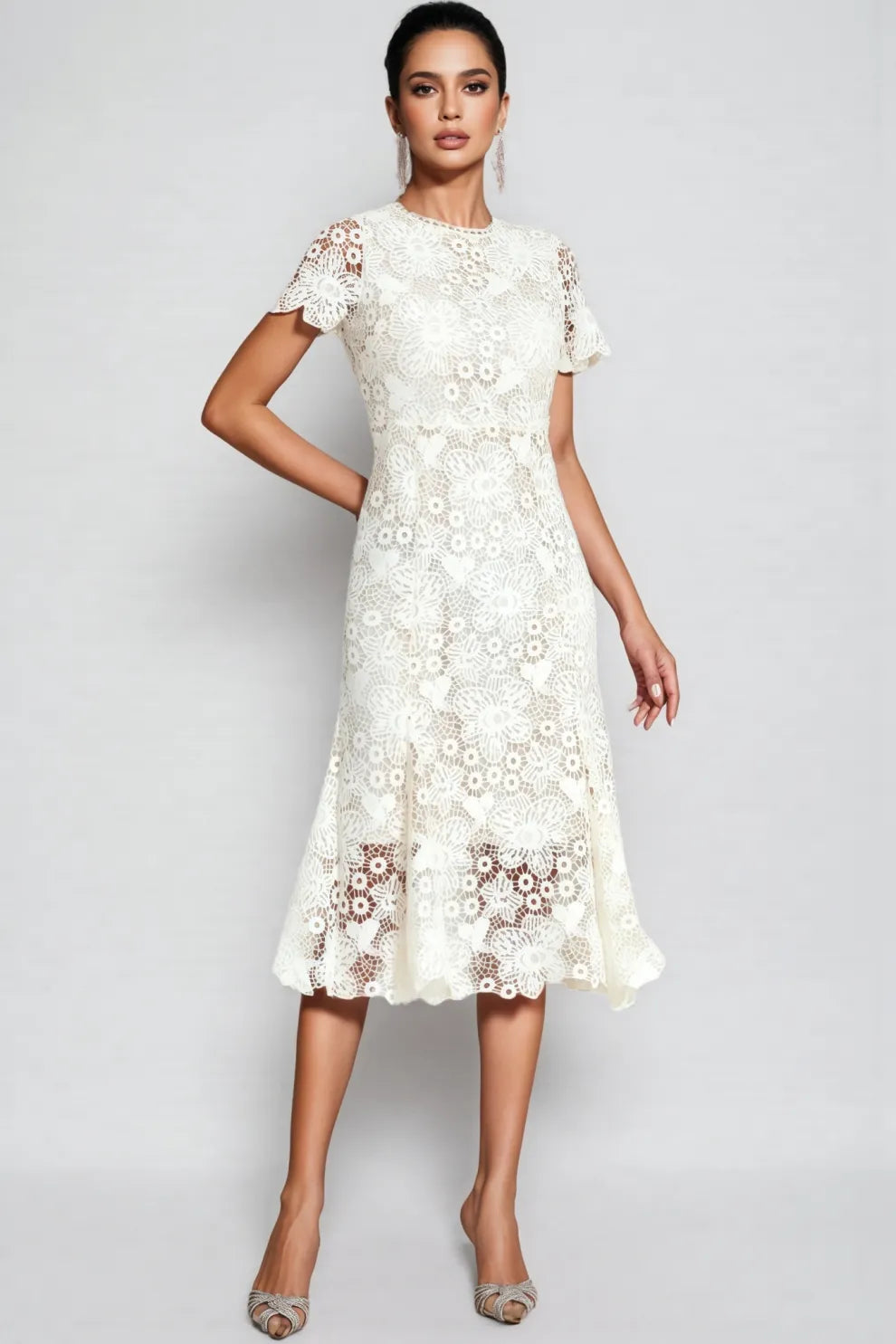 Nolaty beige Lace Mermaid Maxi Dress
