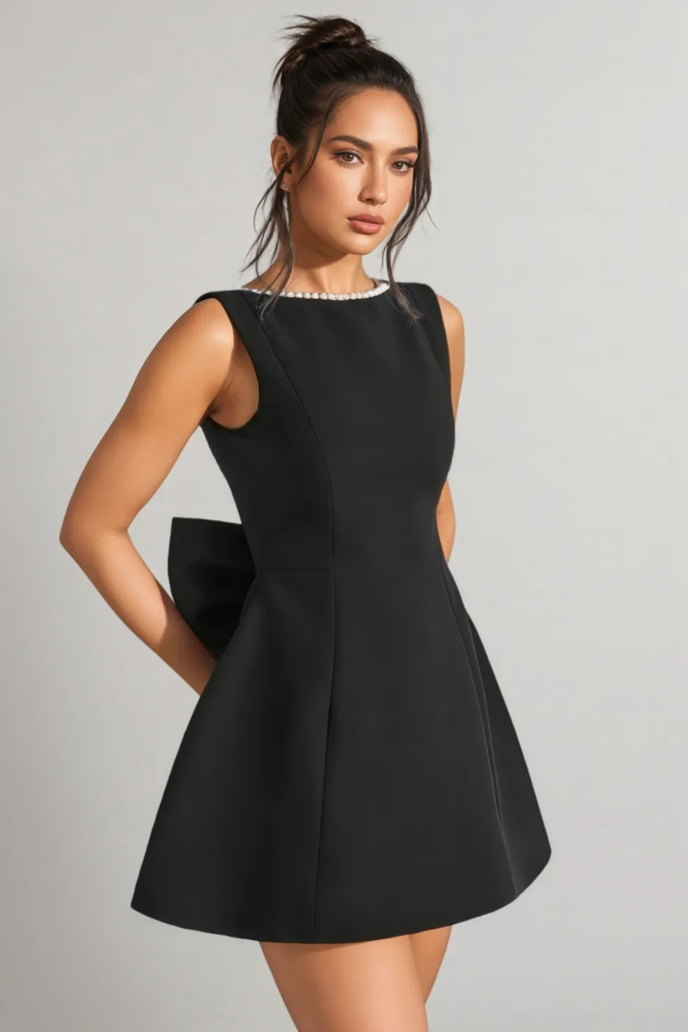 Opal Black Backless Bow Mini Dress
