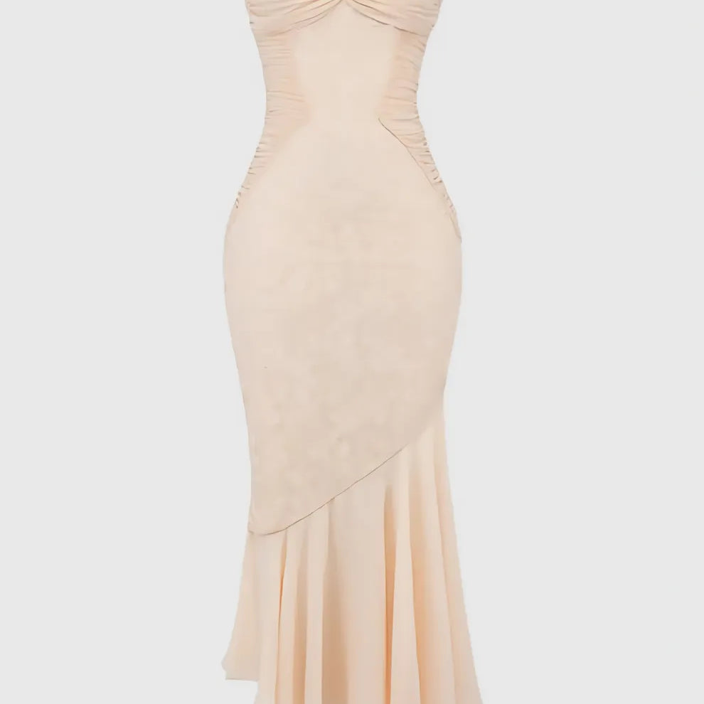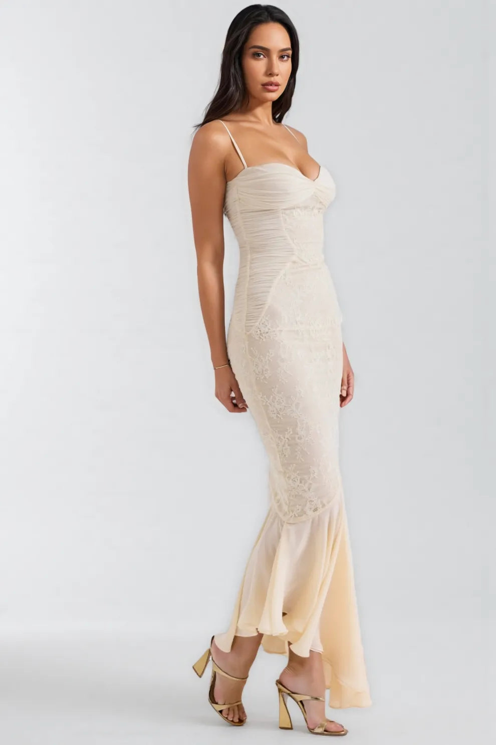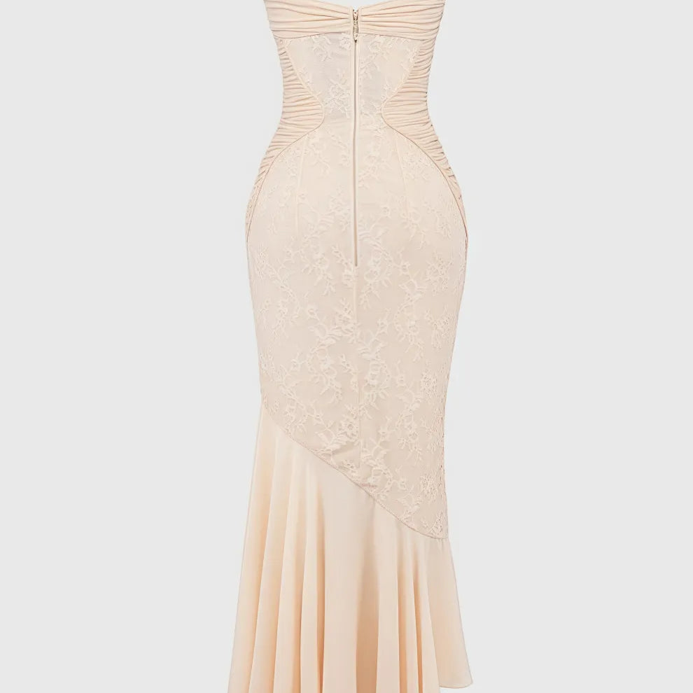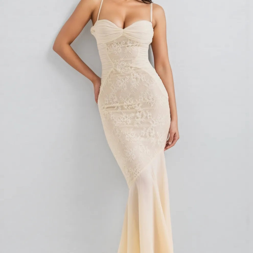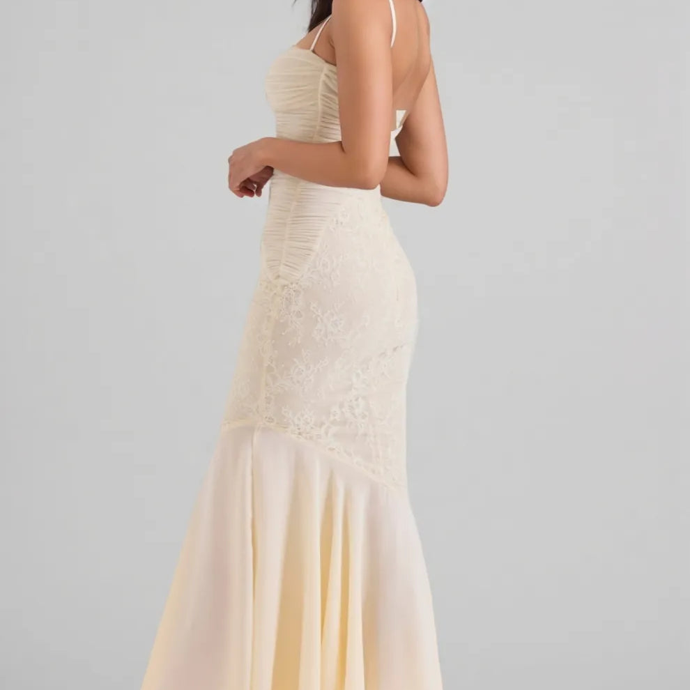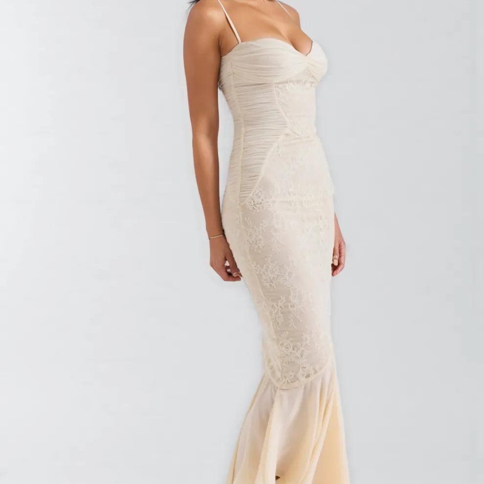 Vaelse Lace Ruffle Halter Maxi Dress