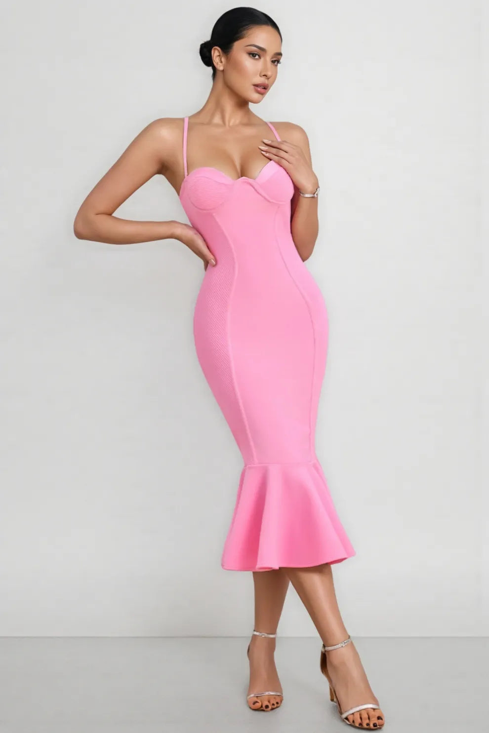 Viviana Pink Strappy Fishtail Bandage Midi Dress