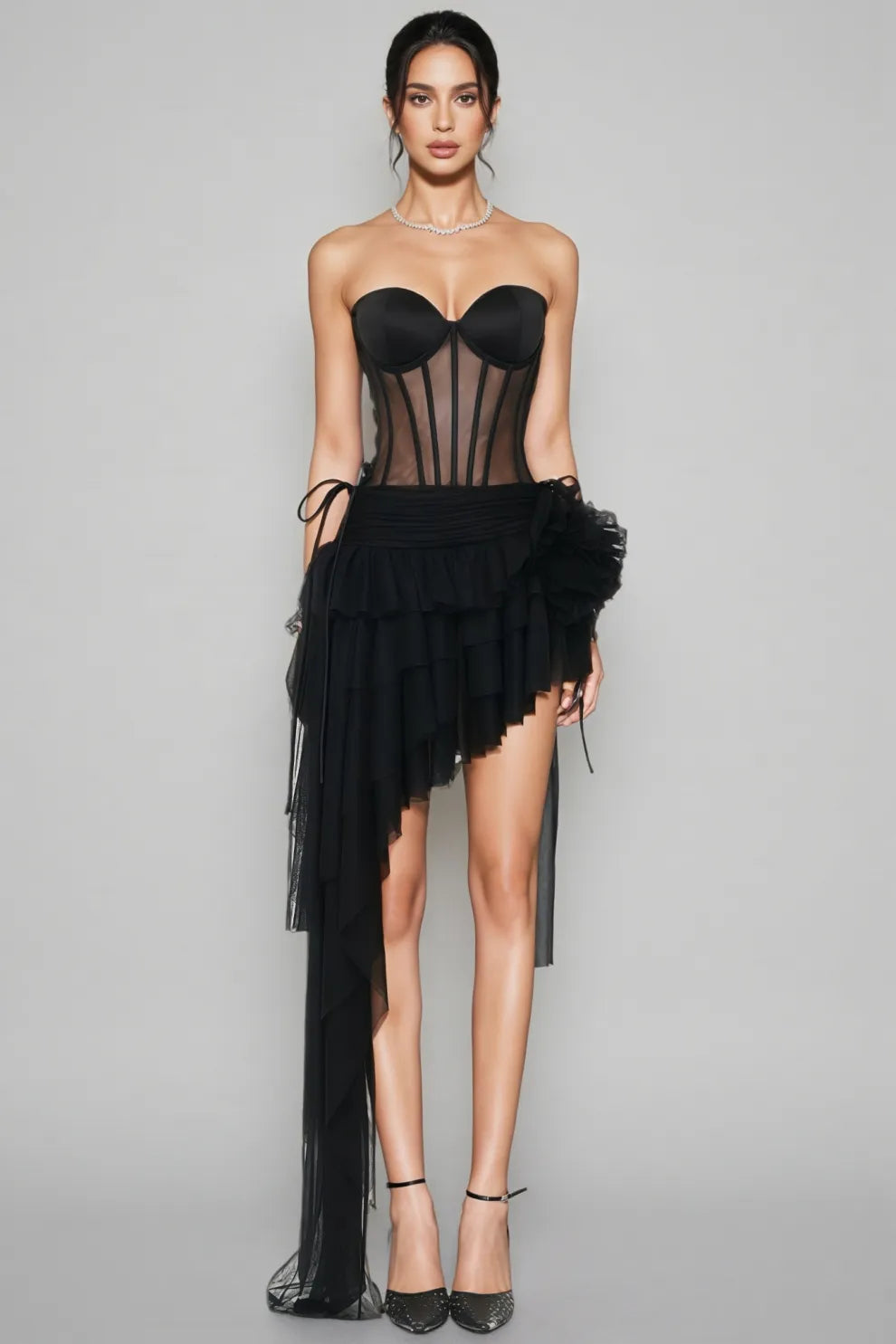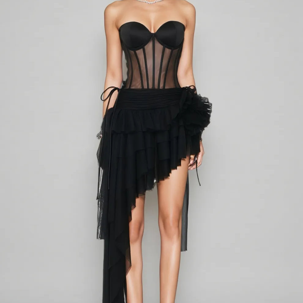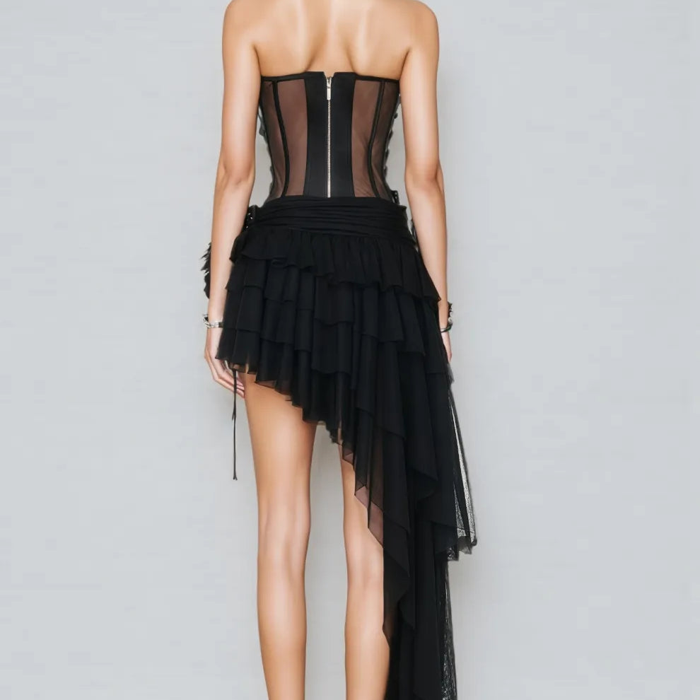 Wenrey Strapless Lace-Up Midi Dress Set