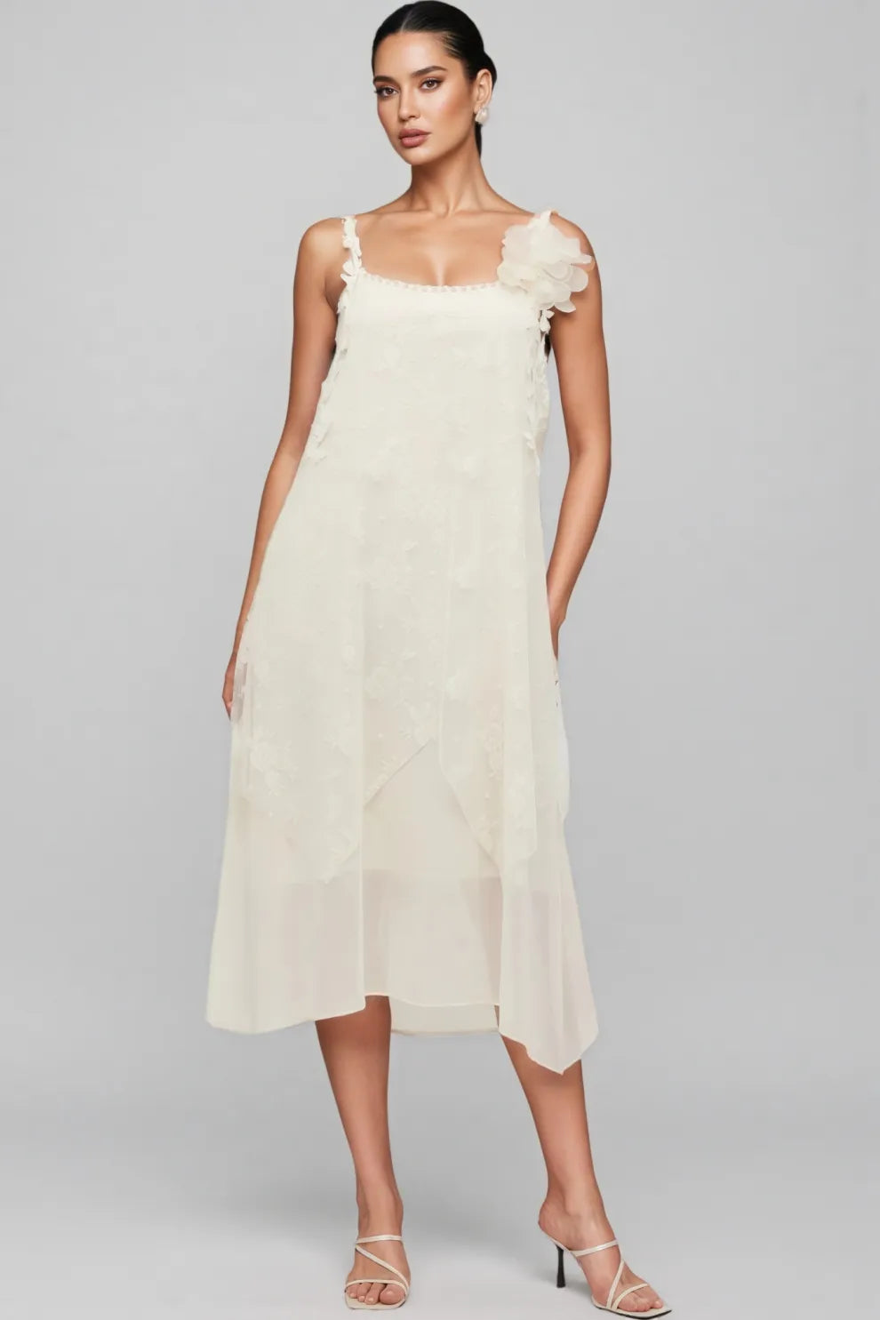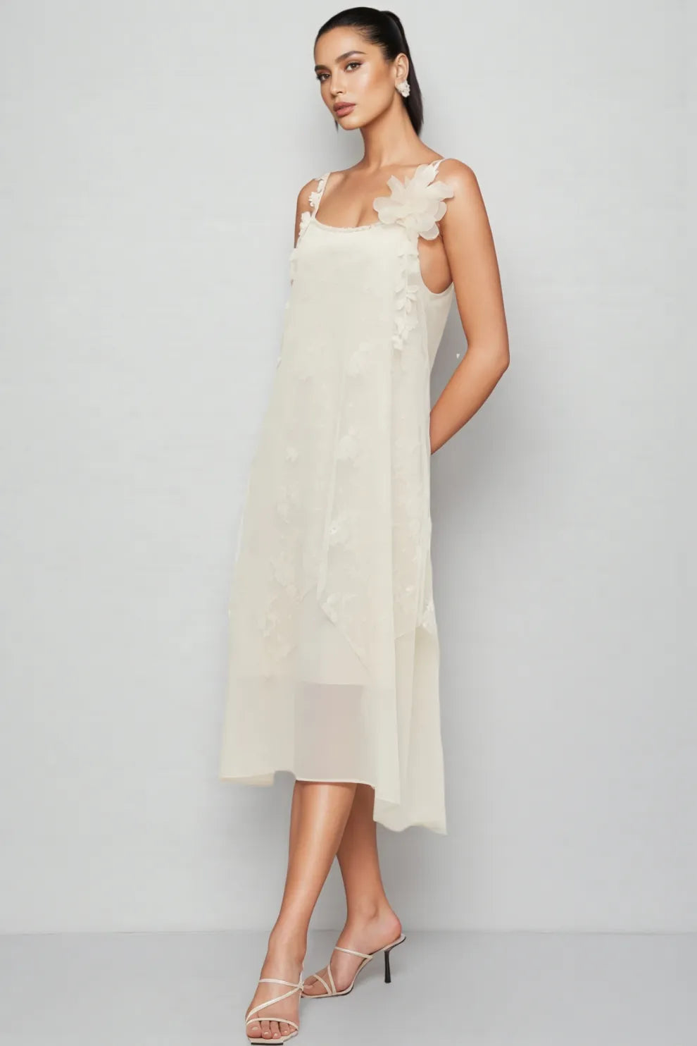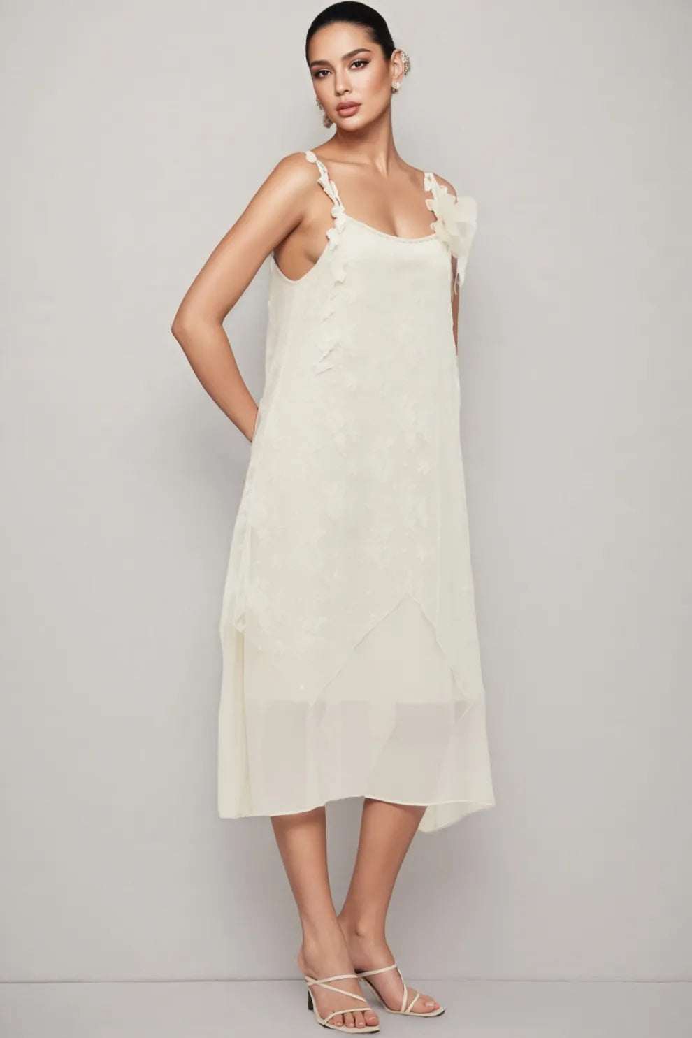 Wrenk Sleeveless Embroidered Flower Midi Dress